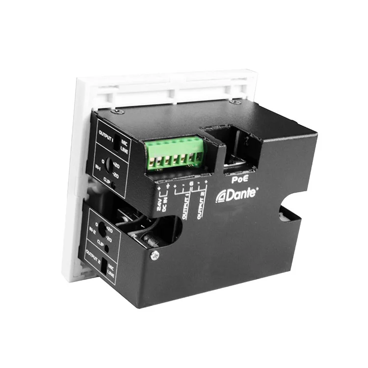 2ch Dante Interface 2 Mic/Line Inputs x 2 출력 인터페이스 패널은 회의실, 라이브 사운드 설정, 브로드 캐스트 스튜디오 및 설치된 AV 시스템과 같은 전문 오디오 애플리케이션에 적합합니다. 벽 마운트 디자인은 다양한 환경에 깨끗하고 효율적인 통합을 가능하게하면서 고품질 오디오 성능을 유지할 수 있습니다.